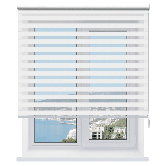 - Гибкая регулировка освещения. Чередование прозрачных и непрозрачных полос позволяет плавно изменять уровень проникновения света, создавая комфортный световой режим.