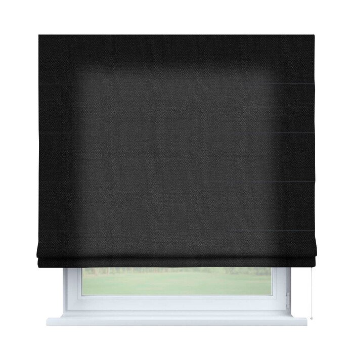 Римская штора лён черный для проёма, карниз верёвочный